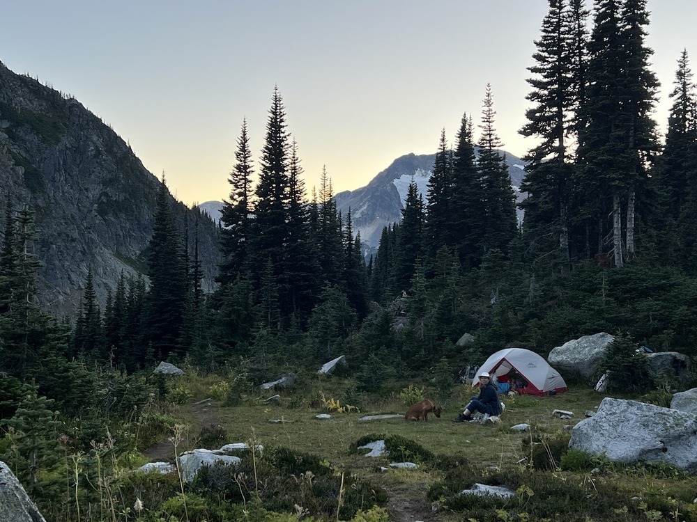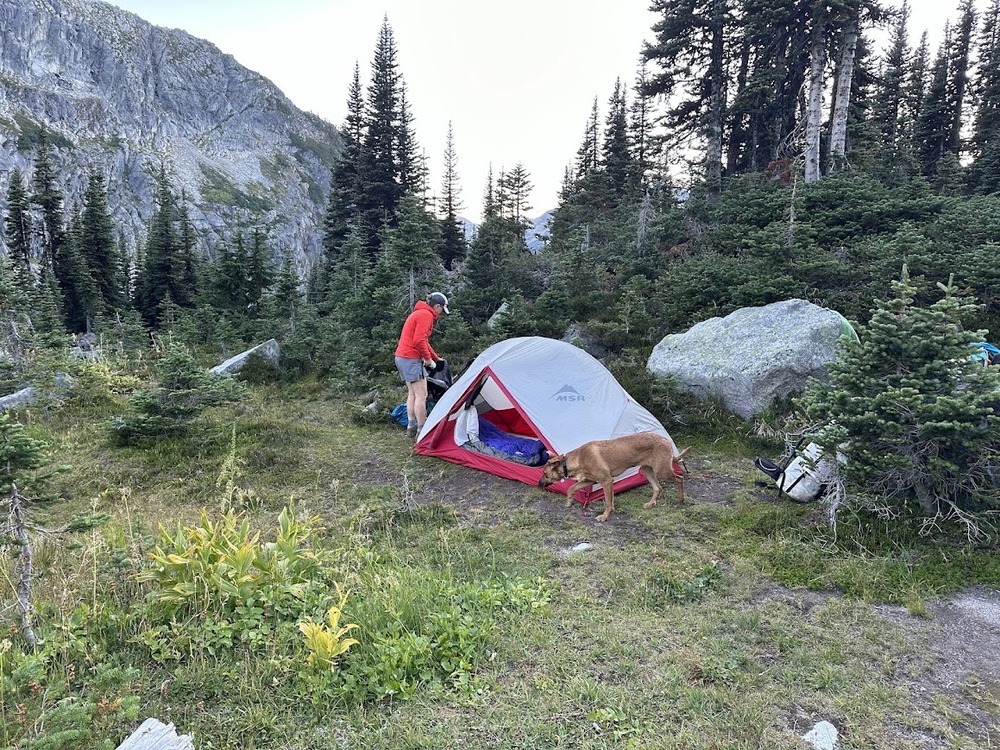 After some time at the lake, we kept walking past the lake to an alpine meadow. We picked a spot where other people had camped before and settled down away from the chaos.